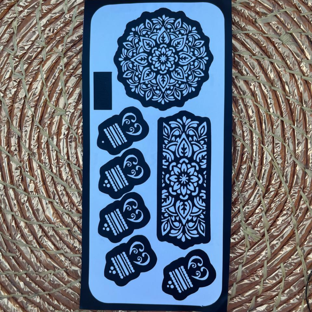A henna stencil is simply an adhesive sticker made of different paper-type material.These stickers allow you to trace body art designs on your skin. Since henna is one of the best ways to get a temporary body tattoo – Henna stencils come quite handy if you want to enjoy the experience of henna on the go.